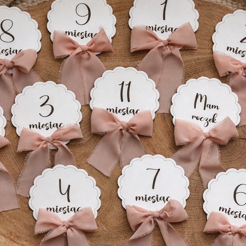 Tabliczki do zdjęć z miesiącami karty do zdjęć falbanka wstążka kokardka pierwszy rok życia