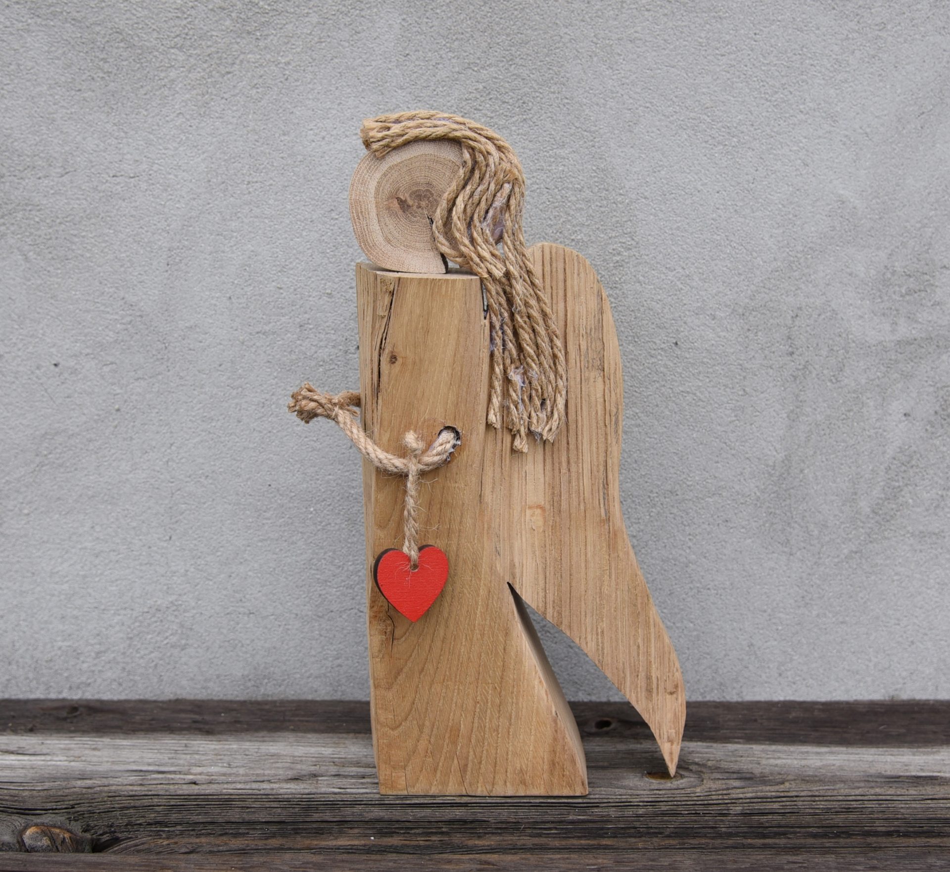 Drewniana figurka anioła. Swoją unikalność zawdzięcza temu, że postać wykonałam z naturalnie ukształtowanego fragmentu drewna. Czerwone, delikatne serduszko pięknie kontrastuje z naturalnym i ciepłym wybarwieniem drewna. Doskonały pomysł na prezent dla bliskiej osoby. Do postawienia Wymiary : 32,5 cm x 16 cm x 5 cm Rękodzieło wykonane z pasją, drewno, produkt polski. W drewnie mogę też laserowo wygrawerować spersonalizowany tekst zgodny z życzeniem Klienta - patrz moje inne aukcje. Kolorystyka produktu może minimalnie różnić się od prezentowanej w zależności od ustawień Państwa ekranu, monitora. Dekoracja drewniana Anioł Prezent Upominek Figurka Anioł z drewna Prezent na Komunię Prezent na ChrzestSpecyfikacja