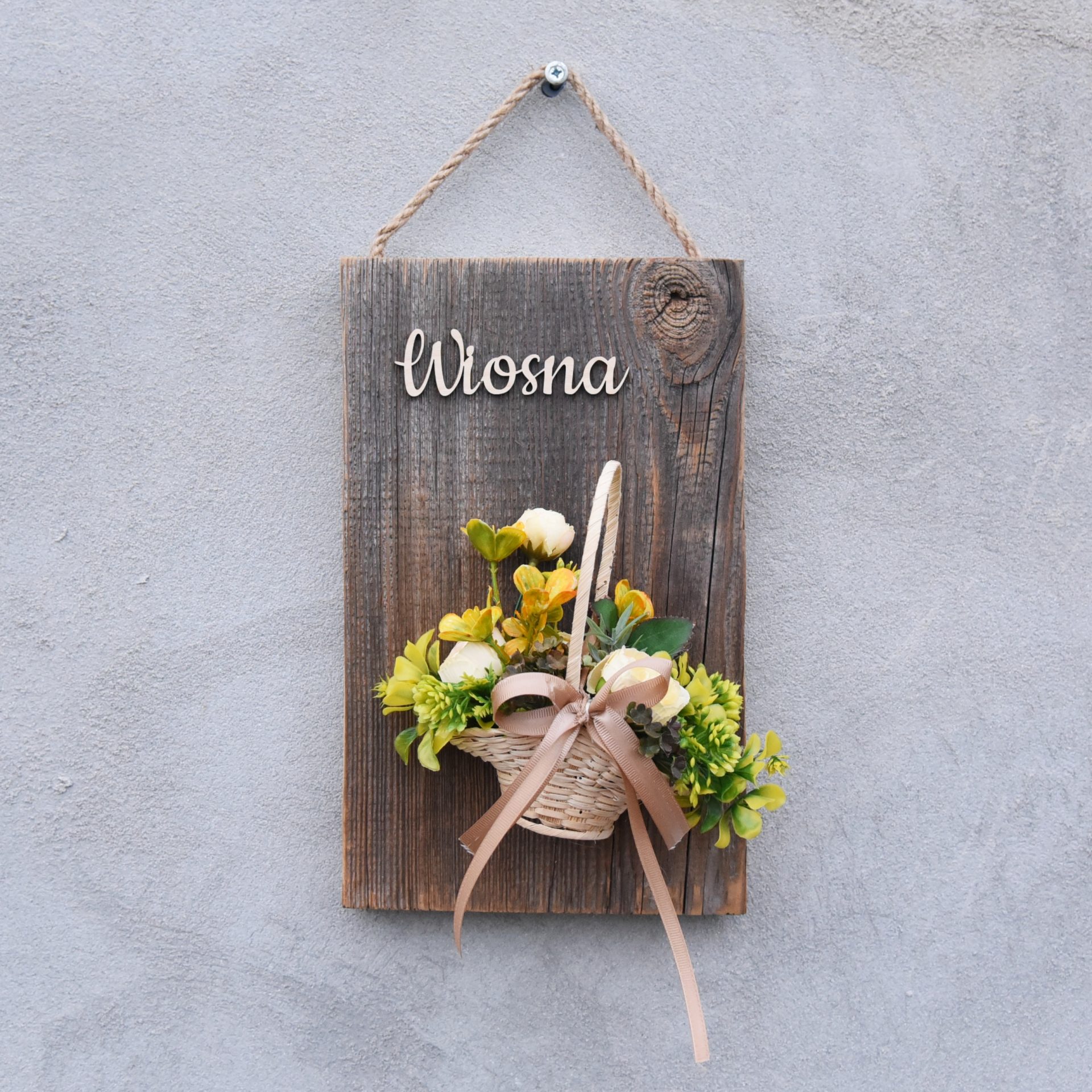 Nasz wianek na drzwi na starej desce łączy w sobie urok wiejskiego stylu z elegancją vintage. Każdy wianek jest umieszczony na ręcznie przetworzonej starej desce, dodając mu niepowtarzalny charakter i nostalgiczny urok. Podkreślając naturalny urok starej deski, dodaliśmy subtelne, ręcznie wykonane aplikacje kwiatowe. Te kwiaty ożywiają całą kompozycję, wprowadzając do Twojego domu atmosferę wiosennego ogrodu. Każdy kwiat jest starannie dobrany, aby harmonijnie współgrać z rustykalnym urokiem deski. Każda deska, na której umieszczamy nasze wianki, ma swoją własną historię. To drewno pochodzi z różnych miejsc, nosząc ze sobą ślady czasu. To nie tylko wianek, to kawałek przeszłości, który wniesie do Twojego domu niepowtarzalny charakter. UWAGA! PONIEWAŻ PROWADZIMY RÓWNIEŻ SPRZEDAŻ STACJONARNĄ BARDZO PROSIMY O WIADOMOŚĆ PRZED ZŁOŻENIEM ZAMÓWIENIA
