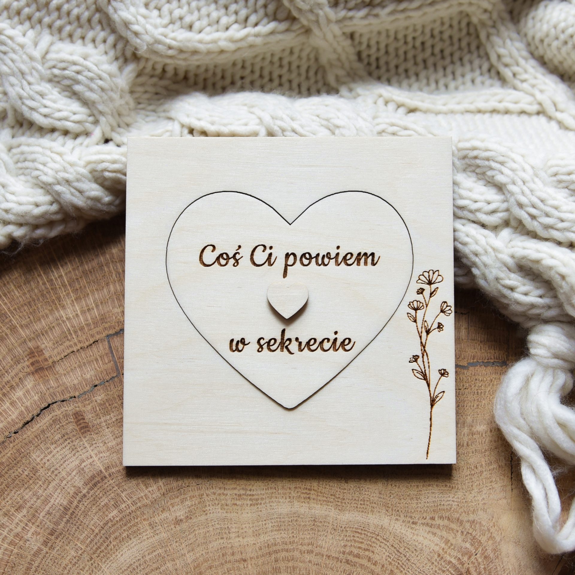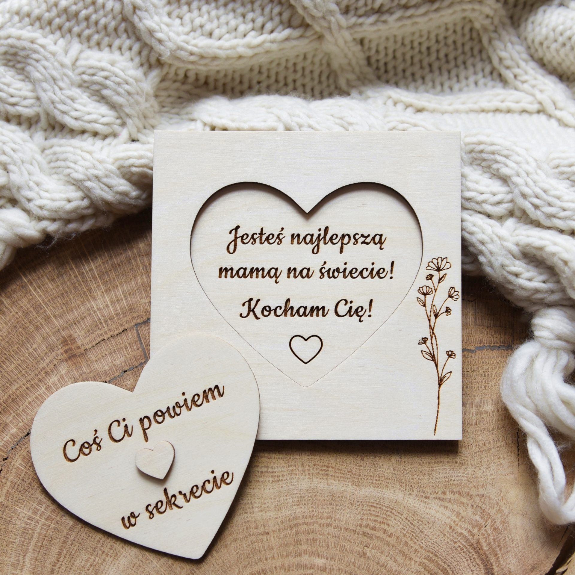 Drewniana tabliczka serduszko z napisem Coś Ci powiem w sekrecie. Jesteś najlepszą Mamą na świecie! Kocham Cię!