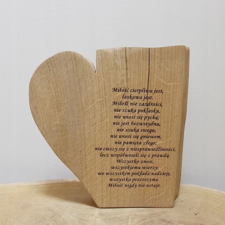 hymn o miłości tabliczka grawer prezent dekoracja z drewna miłość cierpliwa