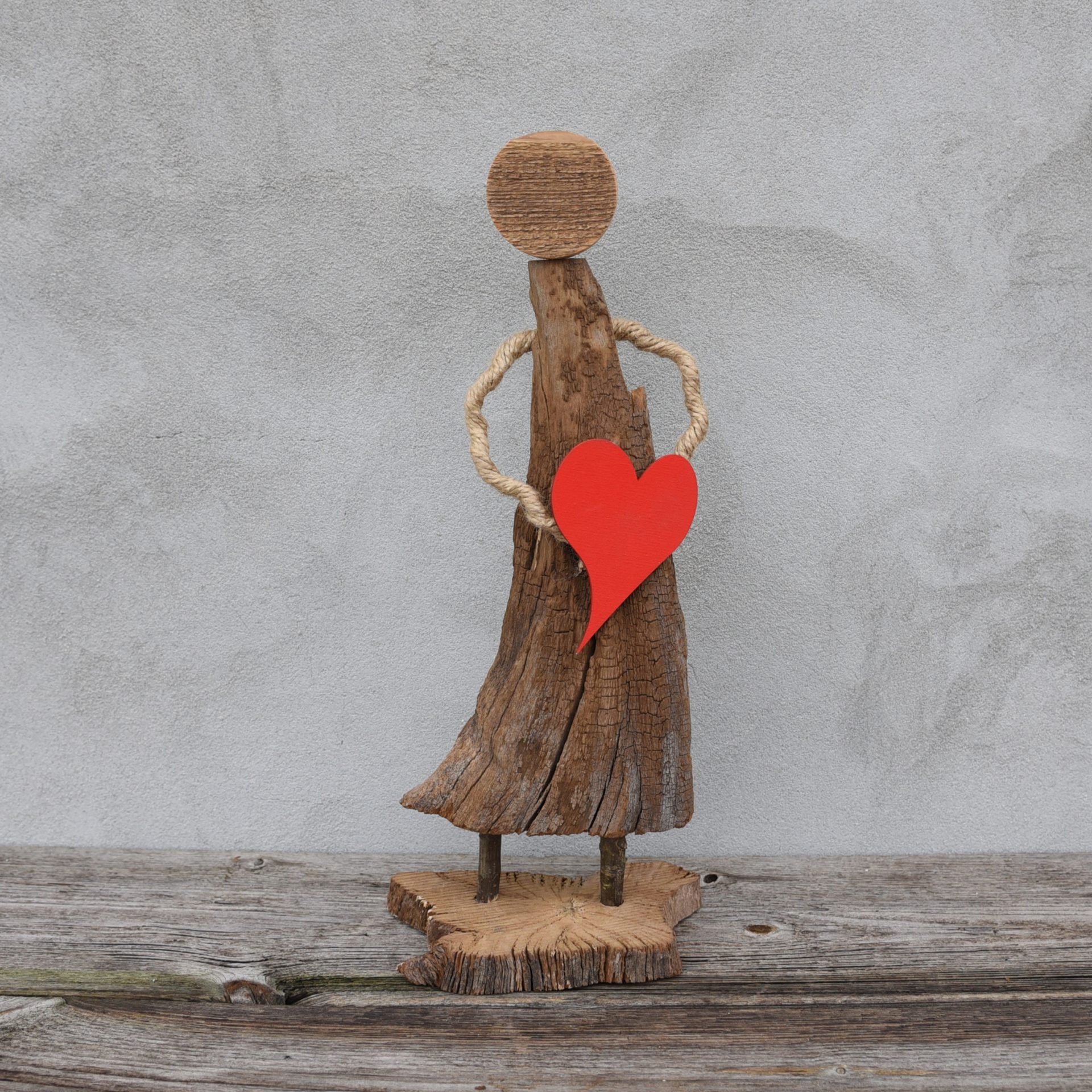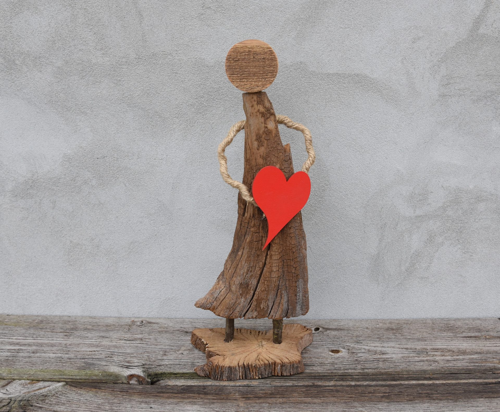 Drewniana dekoracja z sercem. Ludzik z drewna prezent na walentynki prezent dla niej i dla niego