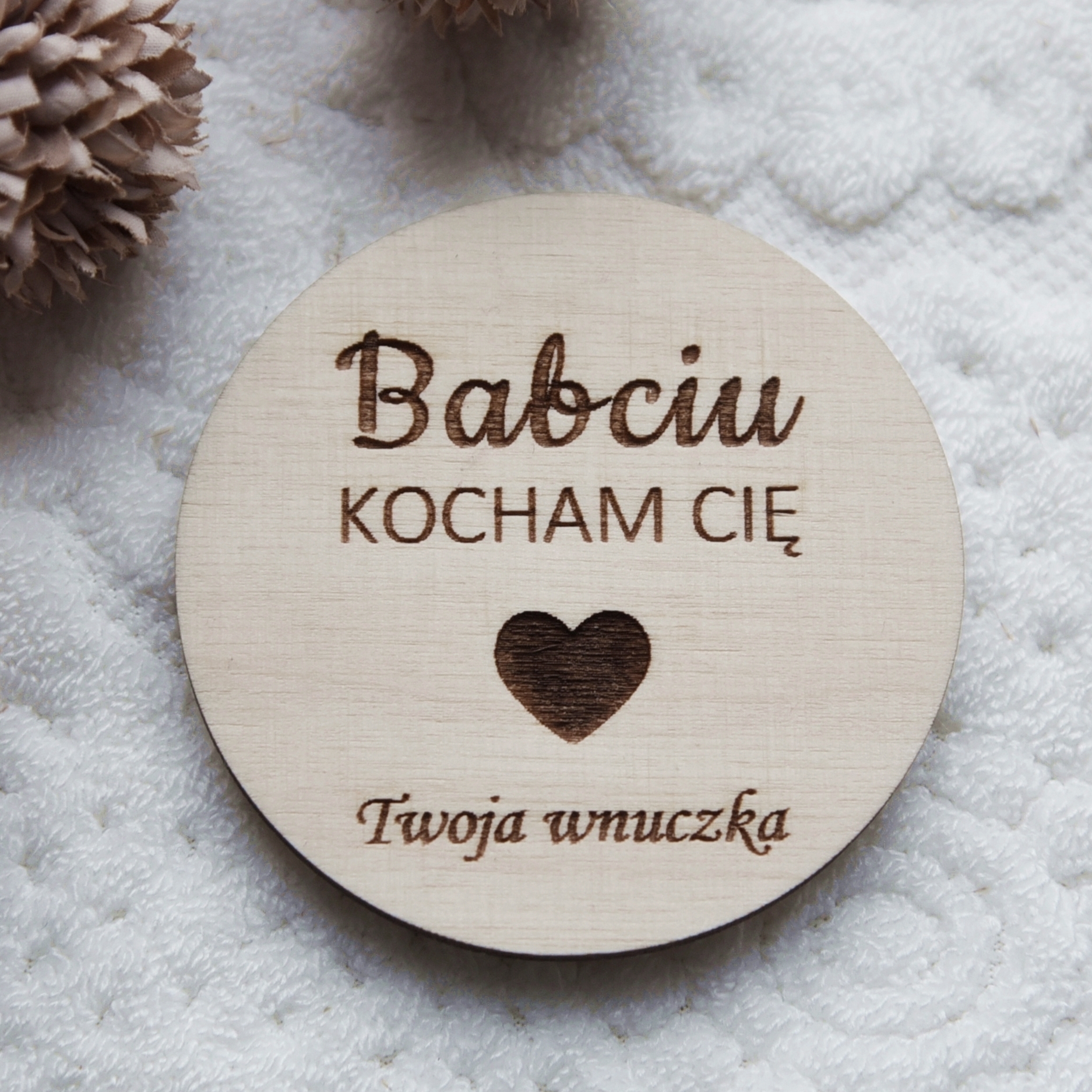 Drewniany magnes na lodówkę z napisem Kocham Cię Babciu!