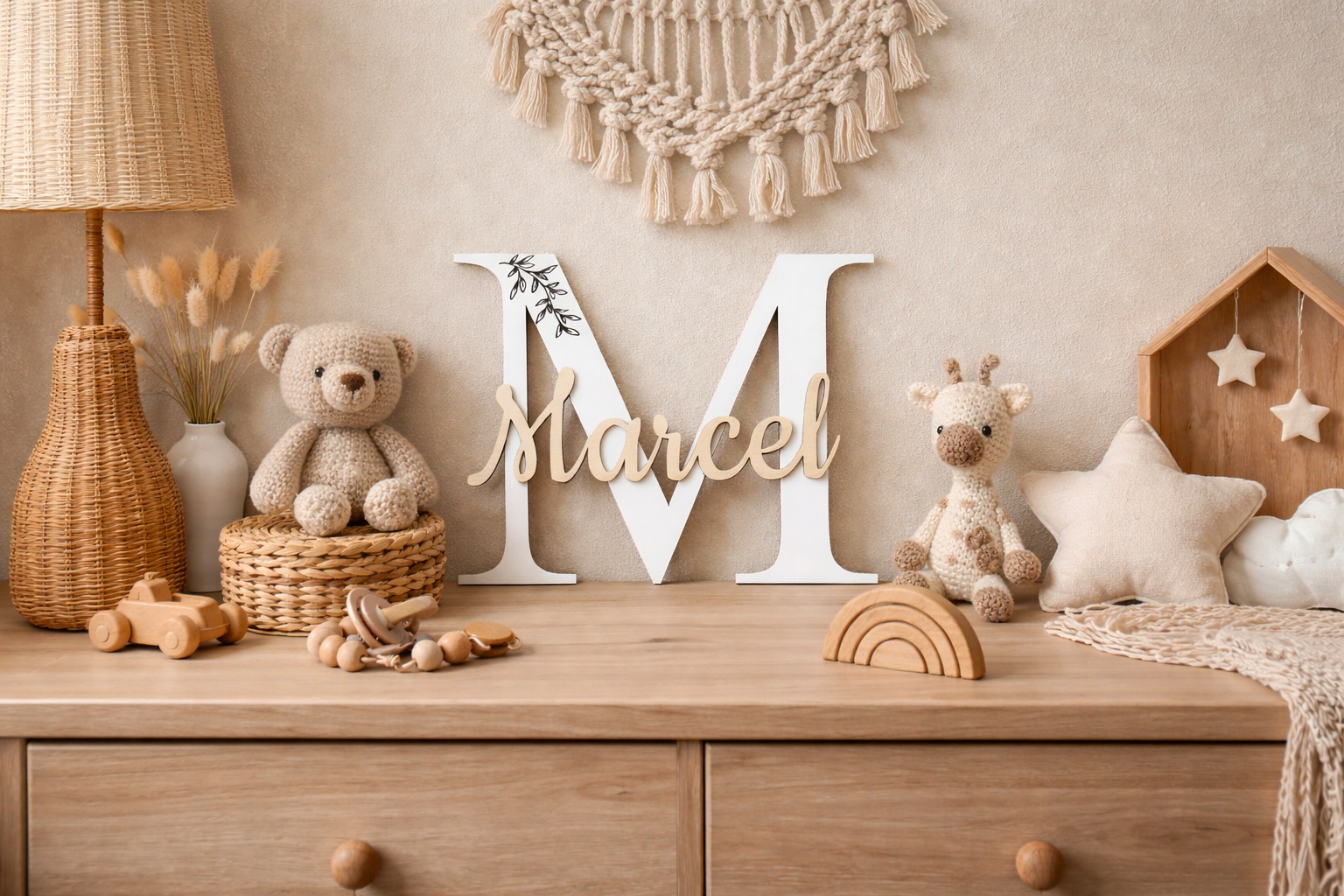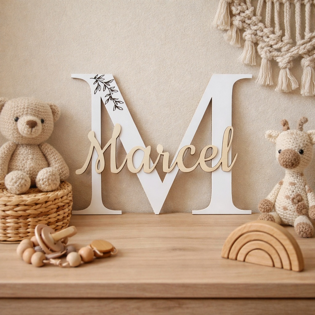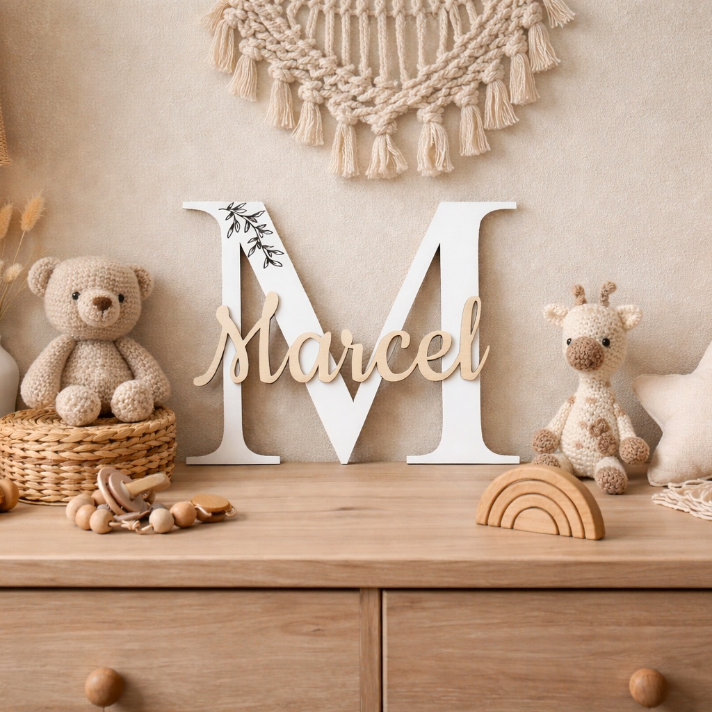 Szukasz wyjątkowej ozdoby do pokoju dziecka? Personalizowana literka z imieniem to idealne połączenie estetyki i emocji 💛 Duża litera (inicjał) połączona z imieniem tworzy spersonalizowany element wystroju, który przyciąga uwagę i nadaje wnętrzu przytulności. Doskonale sprawdzi się jako: dekoracja do pokoju niemowlaka ozdoba na komodę lub półkę element sesji zdjęciowej dziecka pamiątka na lata. Literka nadaje się do oparcia lub naklejenia na ścianę. Nie jest stojąca Jak zamówić? Podczas składania zamówienia podaj: * imię dziecka * literę (inicjał) Specyfikacja produktu Materiał: płyta HDF grubość 3mm / sklejka Kolor: biały + naturalne drewno Personalizacja: dowolne imię i literaSpecyfikacja