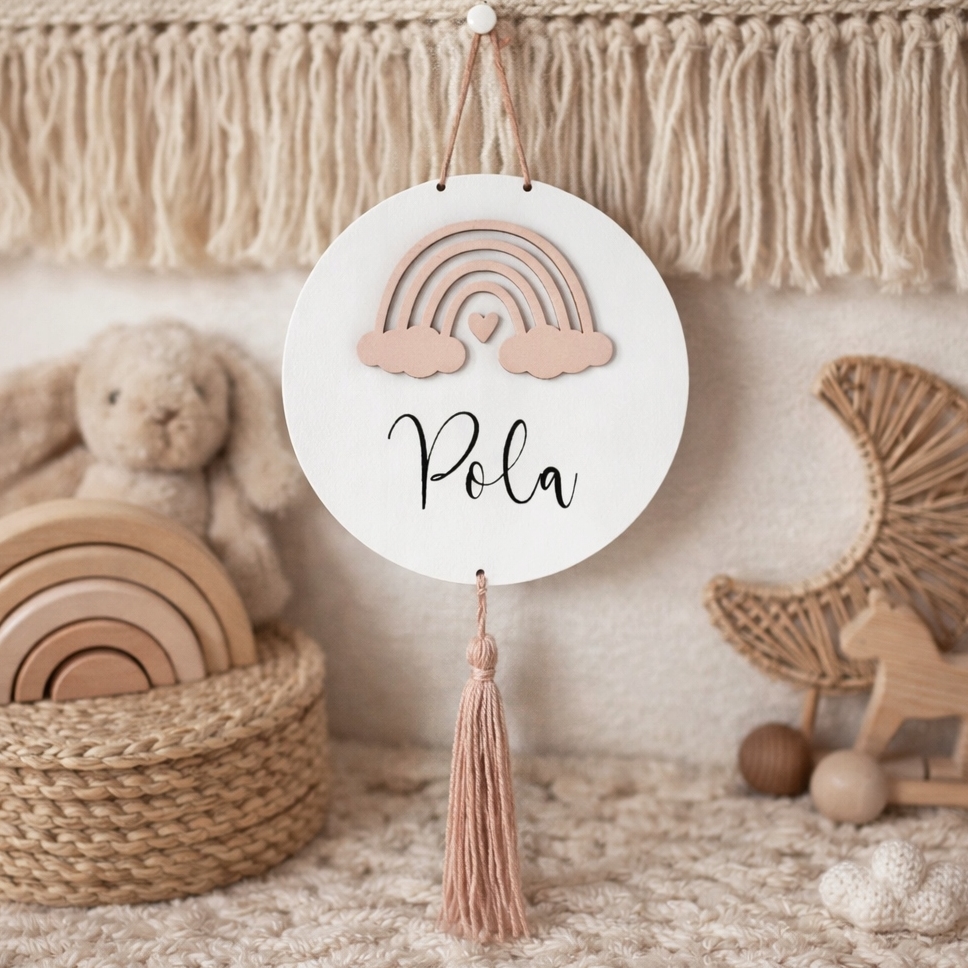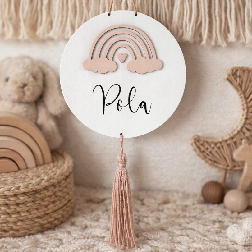 Personalizowana Tabliczka z Imieniem – Elegancja i Urok w Jednym! ✨ Tabliczka z chwostem i tęczą oraz dowolnym imieniem to subtelna dekoracja, która dopełni wystrój w pokoju dziecka i doda mu odrobinę wdzięku. Dzięki tej uroczej ozdobie, pokój Twojego dziecka zyska cudowny przytulny charakter. Pięknie zaprezentuje się podczas sesji zdjęciowych, a także zostanie piękną pamiątką na długie lata. Tabliczkę wykonaliśmy z płyty hdf w kolorze białym z dodatkami w kolorze pudrowego różu. Całość dopełnia pudrowy chwost. Prosimy o podanie imienia i koloru przy składaniu zamówienia. Wersja dla chłopaka niebieska szara lub beżowa tęcza i chwost. PRODUKT NA ZAMÓWIENIE! Wymiary samej tabliczki: 15cm x 15cm Materiał:- Płyta HDF dwustronnie biała