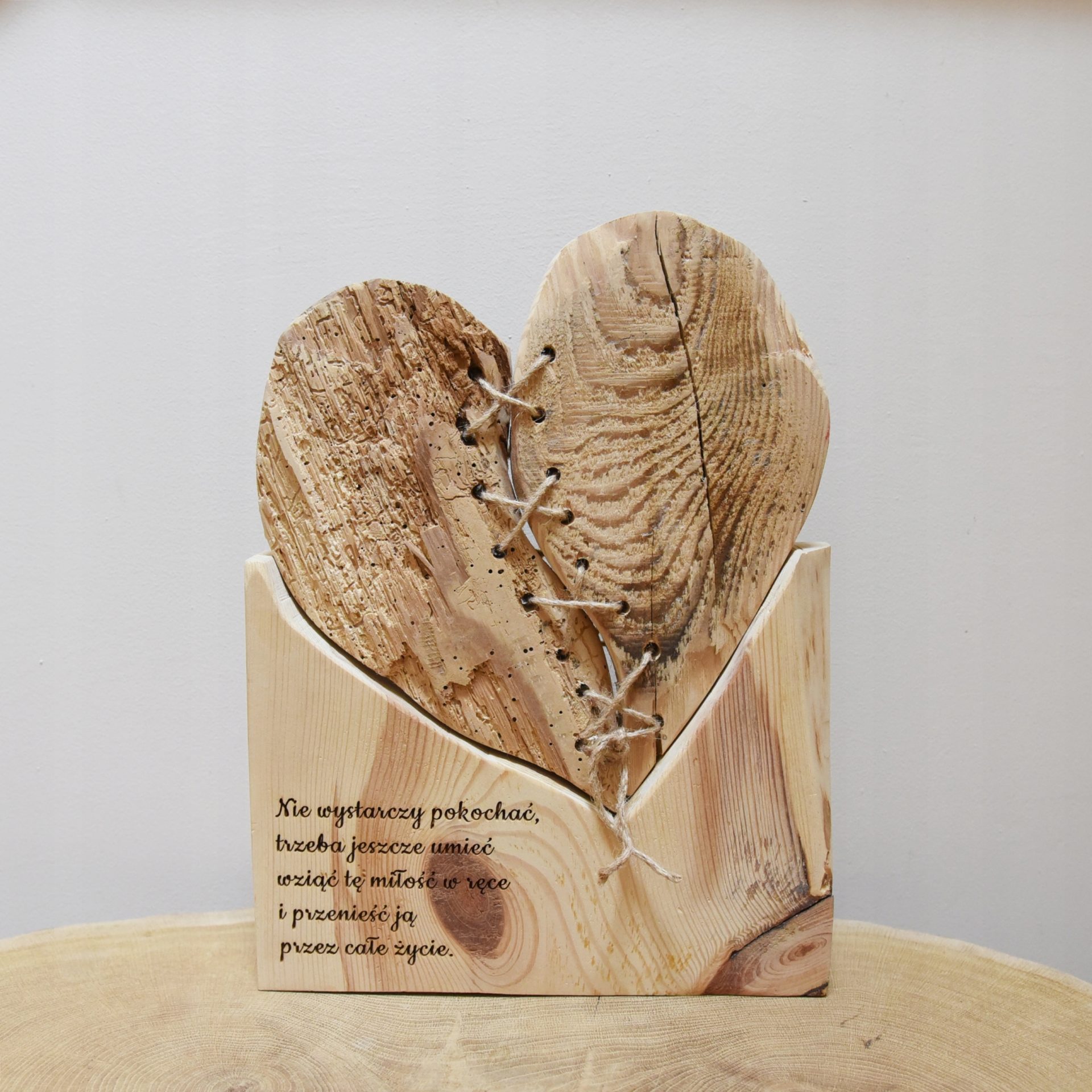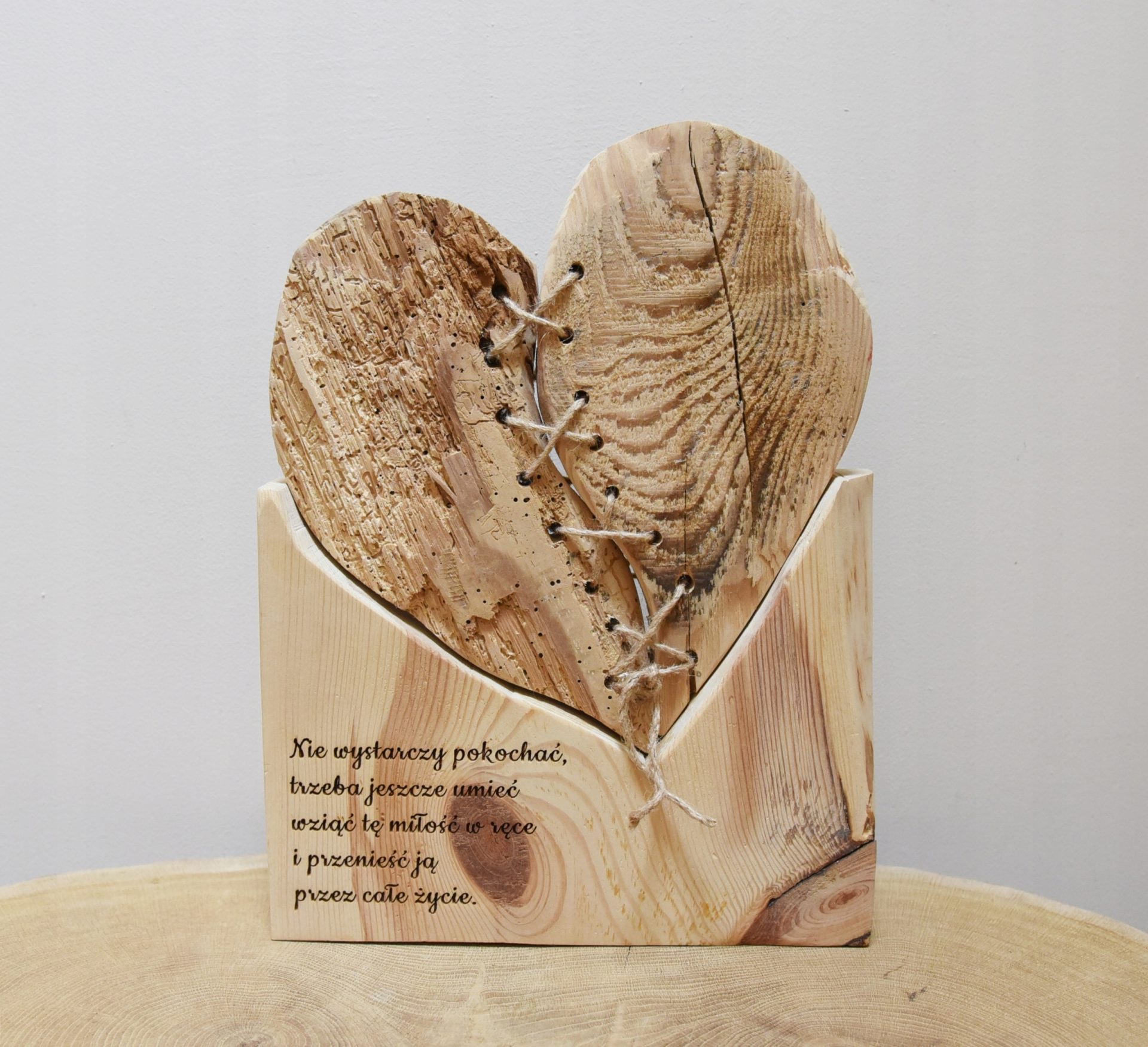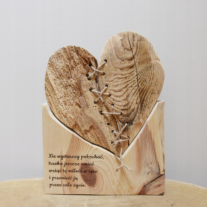 serce dekoracja z drewna grawer miłość cytat nie wystarczy pokochać prezent