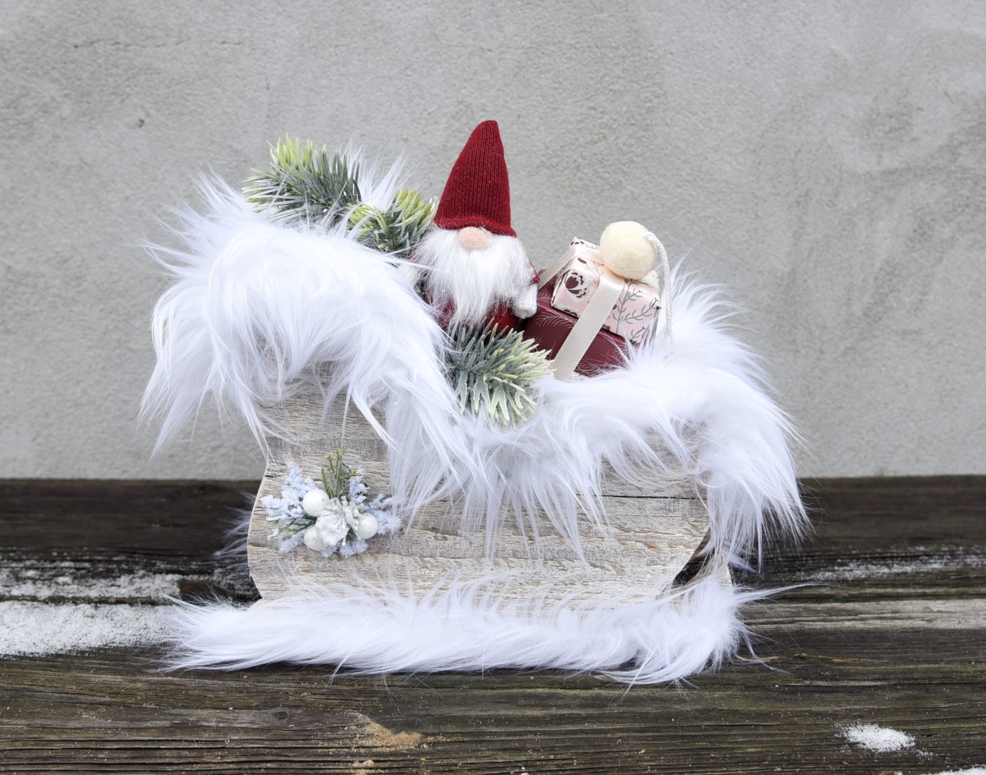 Stroik bożonarodzeniowy dekoracja prezent Boże Narodzenie sanie skrzat