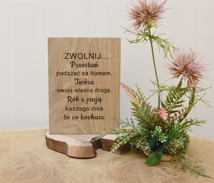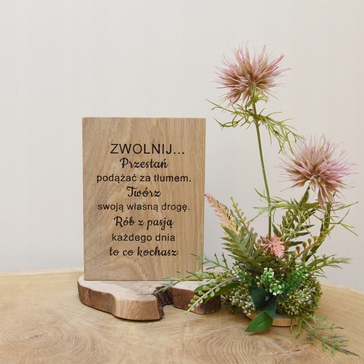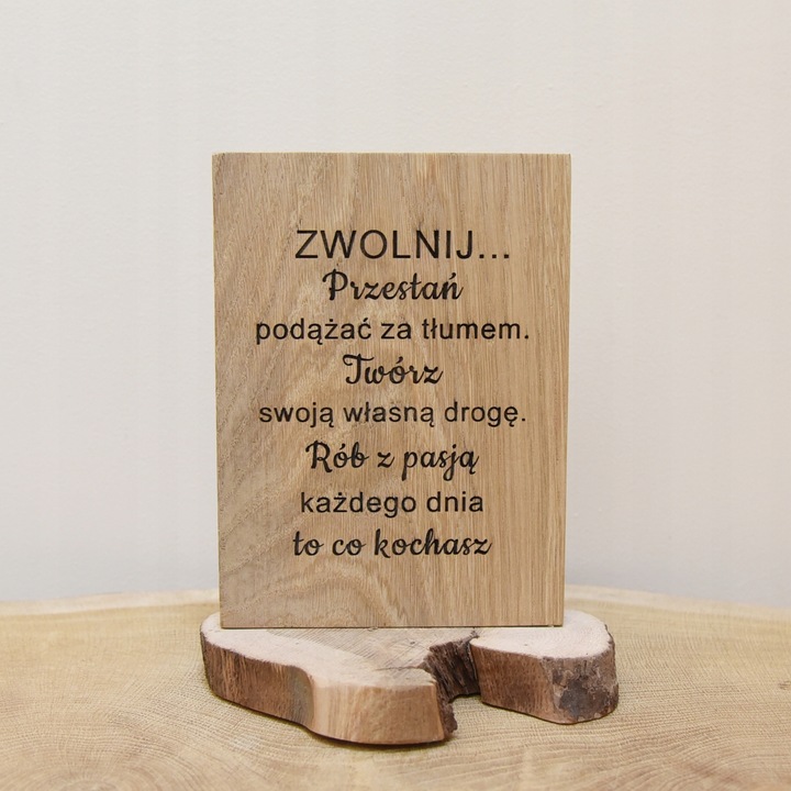 Tabliczka z napisem cytat grawer dekoracja z drewna prezent zwolnij