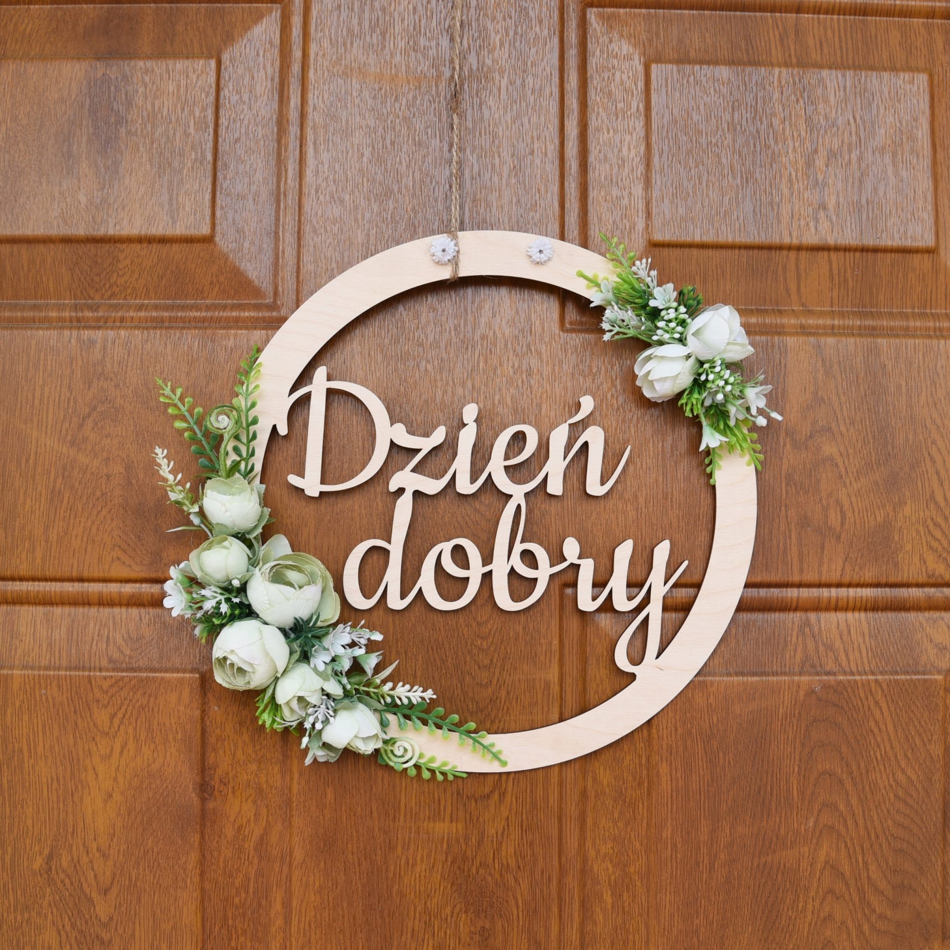 Wianek na drzwi dekoracja kwiatowa dzień dobry stroik na drzwi